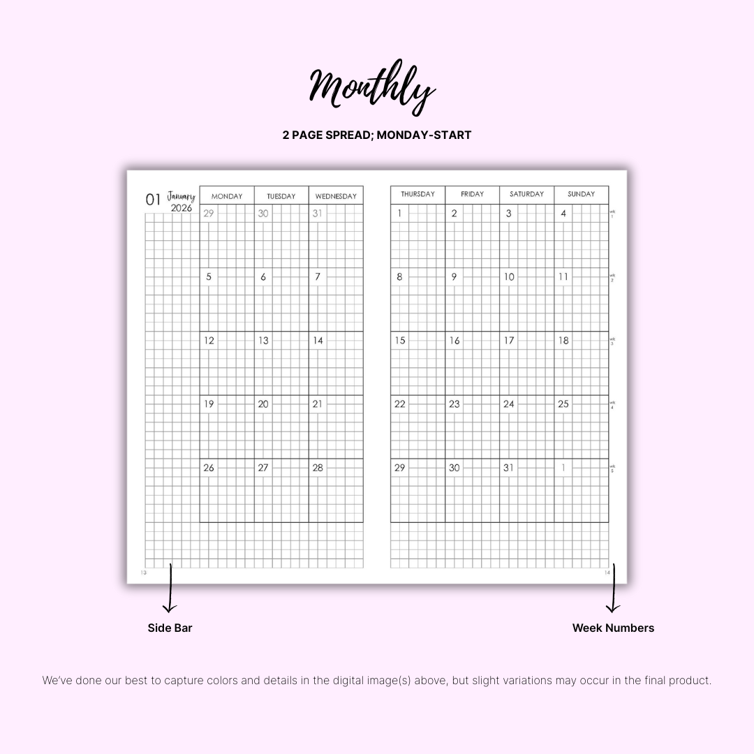 Available exclusively in B6 Slim and Standard TN sizes for 2026, each insert includes dated monthly spreads for the entire year, making it easy to keep your schedule organized at a glance.