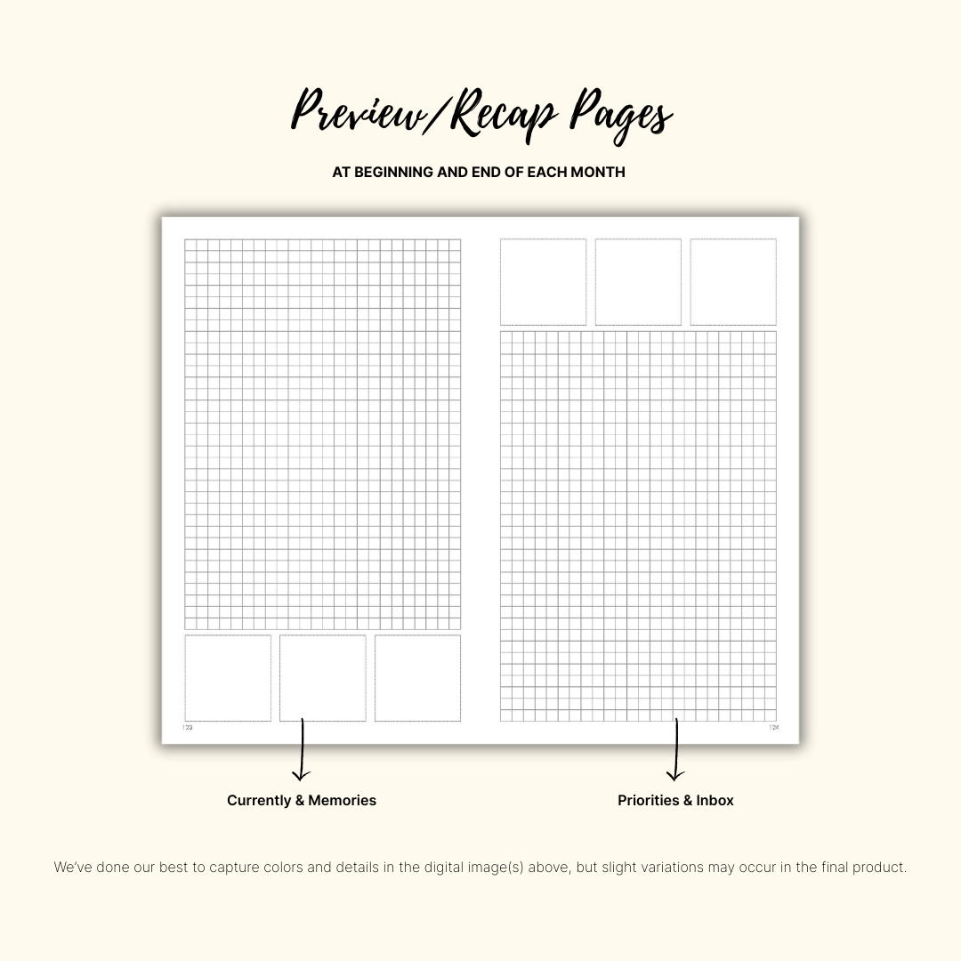 For 2026, the quarterly planner is available in B6 Slim and Standard TN sizes. It features both weekly + daily layouts and integrates seamlessly with our 2026 monthly and grid inserts-offering a fully customizable system for planning, journaling, and everything in between. Each quarterly book covers three (3) months and contains 15 weeks.